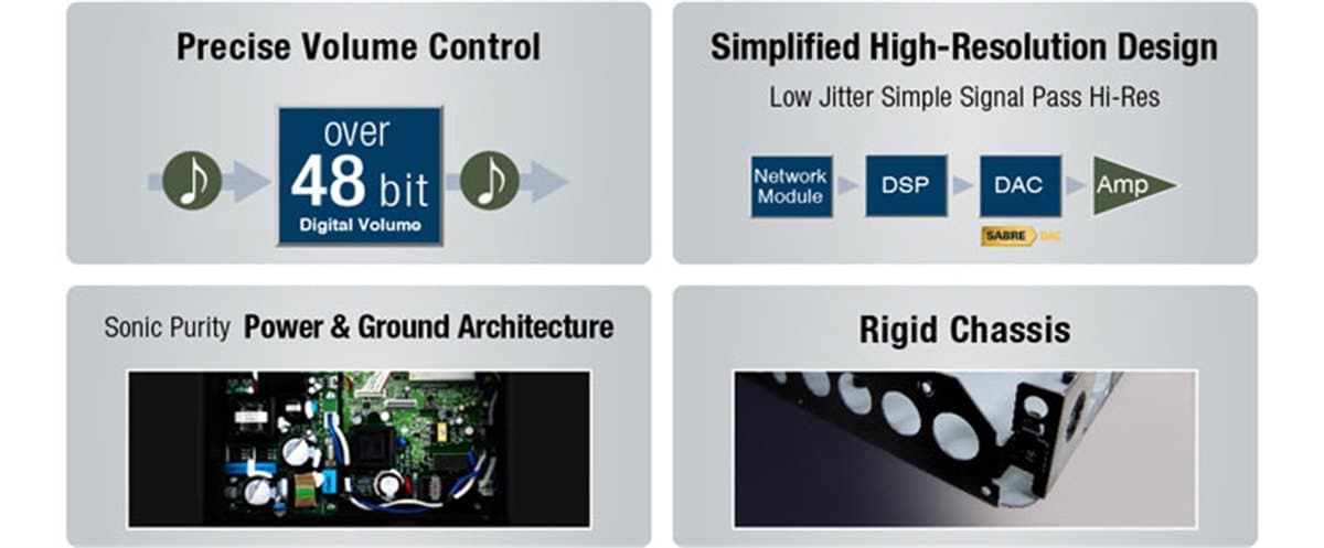 - Controlul digital pe 48 de biti este mult mai mare decât rezoluția semnalui de intrare, obținând astfel un control de înaltă calitate