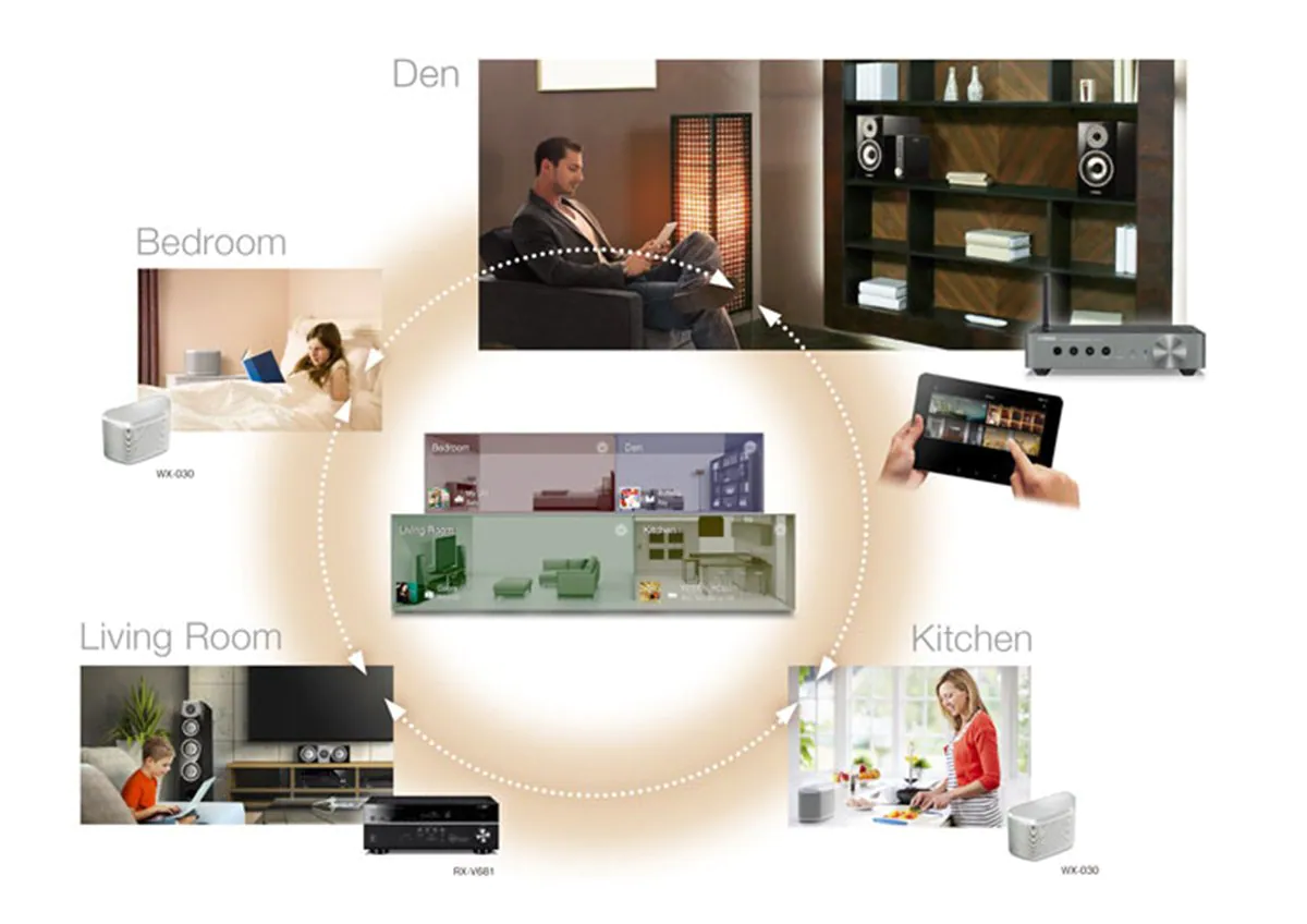 Redați aceeași melodie în mai multe camere sau redați melodii diferite în fiecare cameră. Cu MusicCast, bucurați-vă liber de muzica pe care o iubiți oriunde în casa dvs.