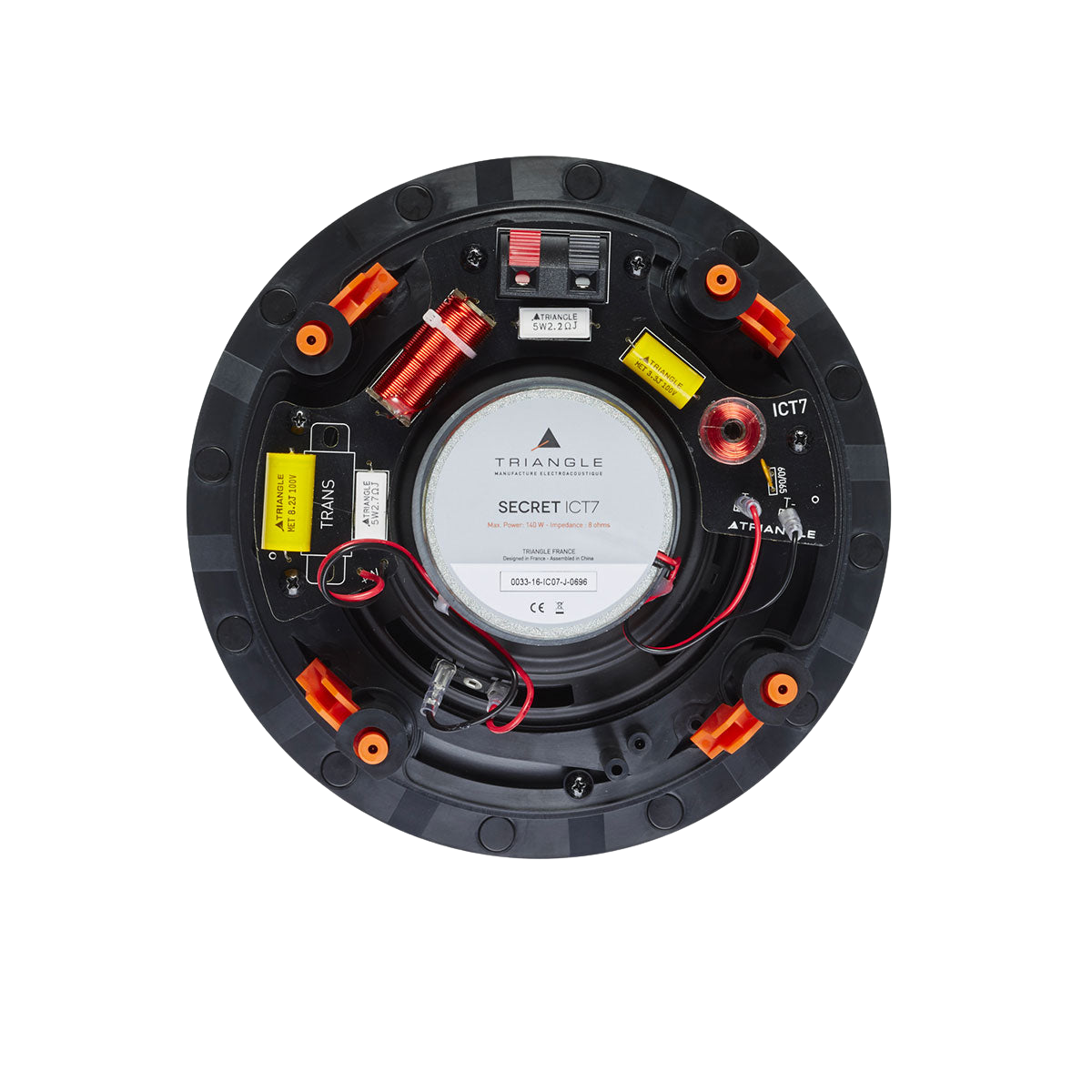 ICT7+ este un difuzor stereo circular echipat cu un driver de 170 mm și două tweetere cu dom de mătase reglabile de 20 mm, pentru a difuza un sunet stereo cu un singur difuzor.