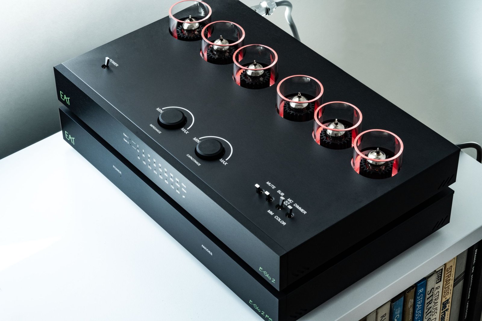 | Dimensiuni (Lățime x Înălțime x Adâncime) | 395 × 86 × 262 mm E-Glo 2 Phono Preamplifier Unit 395 × 61 × 280 mm E-Glo 2 Power Supply Unit |
