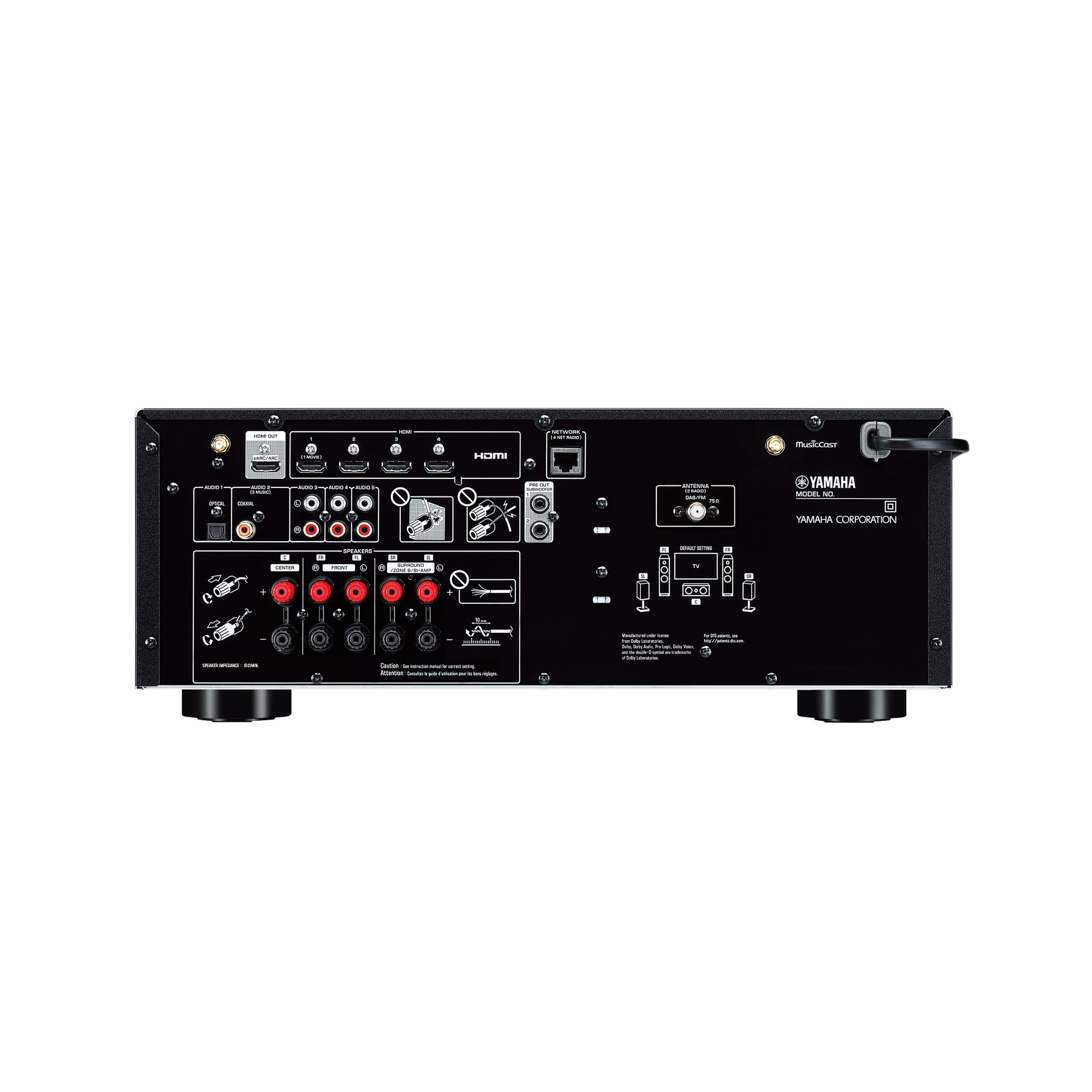 - Wi-Fi, Bluetooth®, AirPlay 2, Spotify Connect și MusicCast multi-room audio