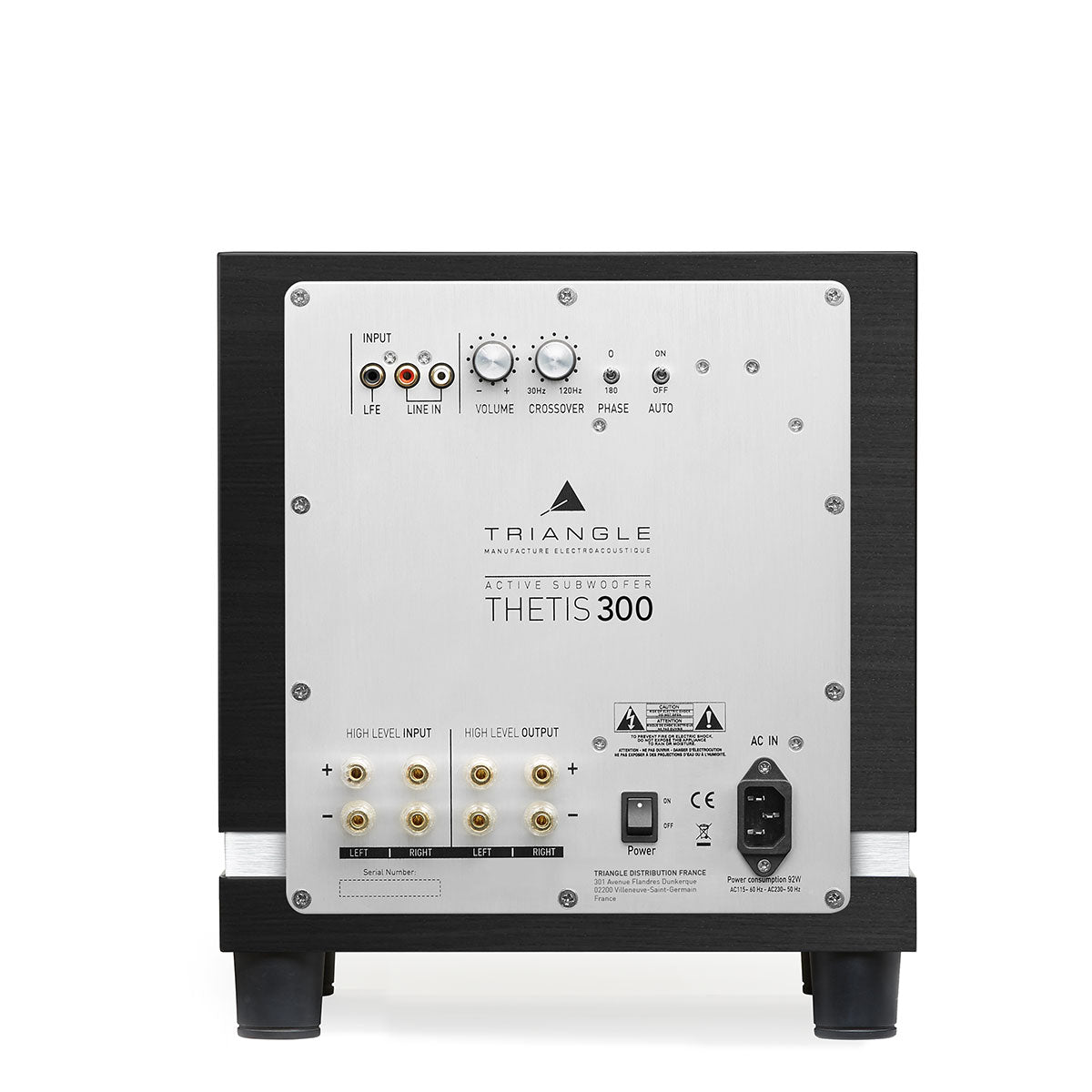 Subwooferele Thetis dispun de numeroase intrări, permițându-le să fie asociate cu toate tipurile de amplificatoare. Acestea includ o intrare LFE directă, RCA standard și intrări de nivel înalt pentru amplificatoare fără ieșire adecvată. Puteți regla volumul, faza și reducerea frecvenței pentru o potrivire perfectă cu difuzoarele principale.